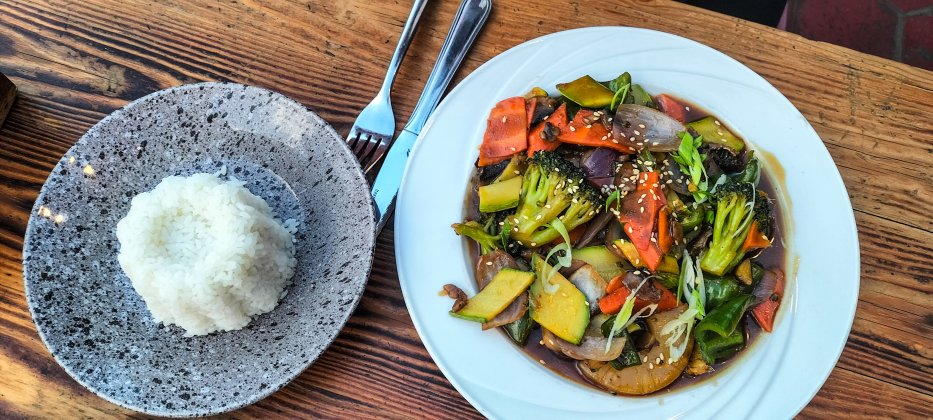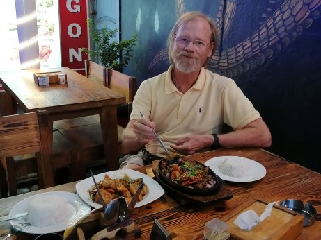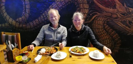 | In der German Bakery gibt es Cappucino und Kuchen in bester deutscher Qualität. | Beim Chinesen schmeckt es uns auch immer. |