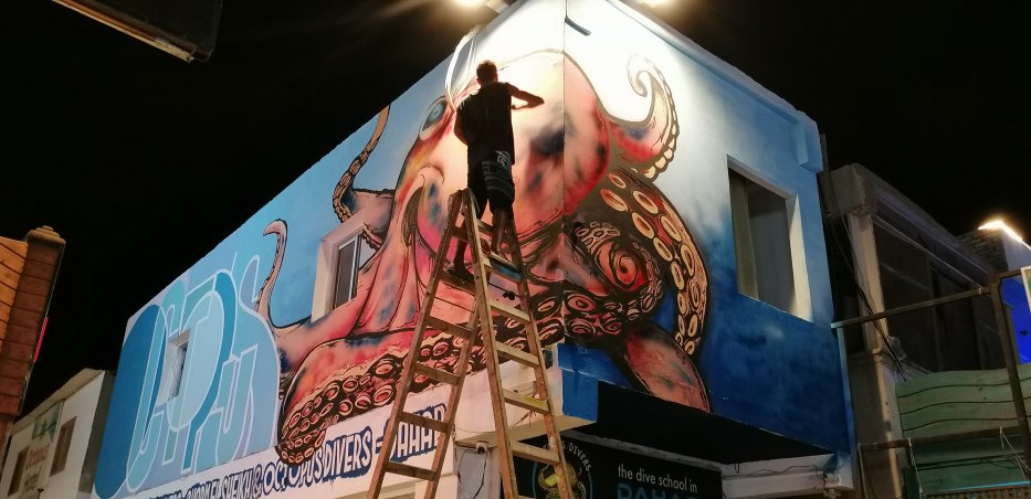 | Auch bei den Octopus Divers wird ein neuer Octopus auf die Fassade gepinselt. |