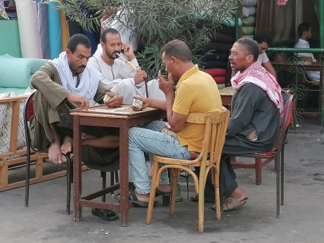 | Spielen und Shisha rauchen mögen die Beduinen. | Die Ziegen gehören zum Stadtbild in Dahab. |