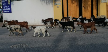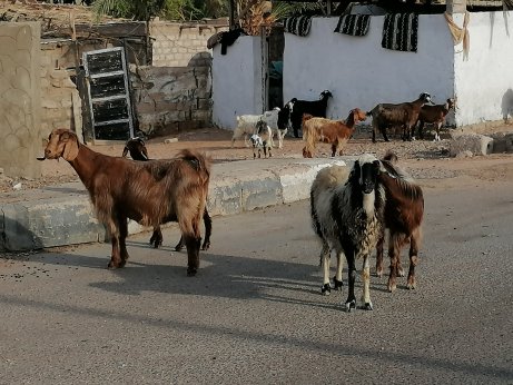 | Die Ziegen dürfen im Stadtbild von Dahab nicht fehlen. Jung und Alt treiben sich in Ashala herum. | |