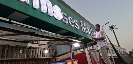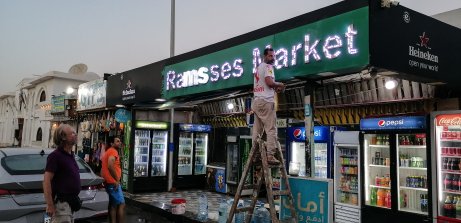 | Die Fassade vom Ramses Market wird geputzt. | |