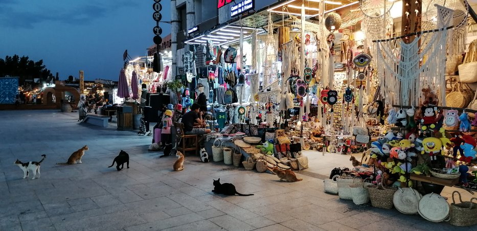 | Eine Bäckerei in der Hauptstraße. | Die ägyptischen Touristen lieben es bunt. |