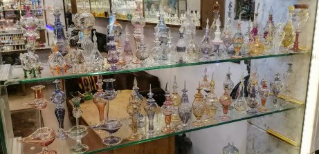 | Die Flakons für Parfüm sind kleine Kunstwerke. |