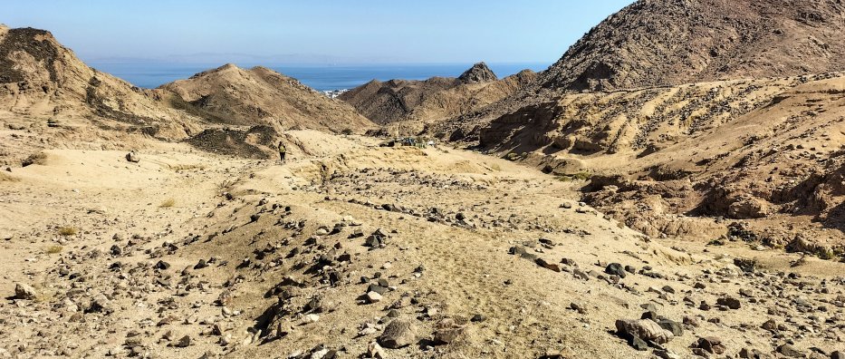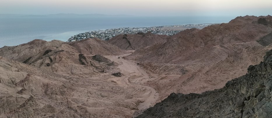 | Angekommen am höchsten Punkt sehen wir Dahab. |