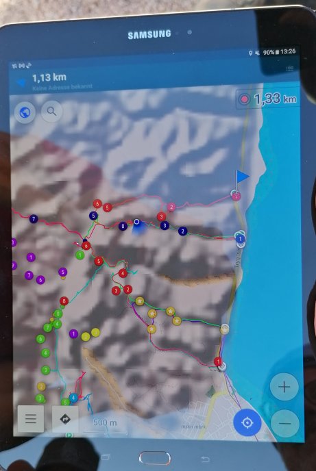 | Mit dem Tracklog am Tablet und der Beschreibung im Buch von Daryl finden wir mühelos den Weg. | |