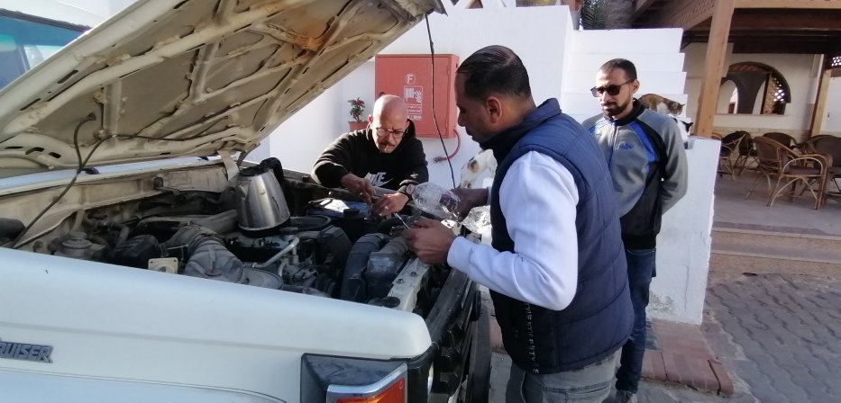 der Landcruiser startet nicht mehr. Die Starter-Batterie ist leer gerödelt und der Kühler ist leck. |