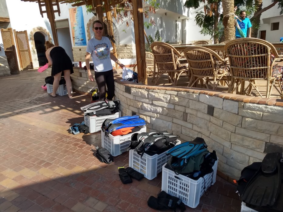 | Jeder Taucher muss morgens seine Kiste packen und für die Abfahrt bereit stellen. |