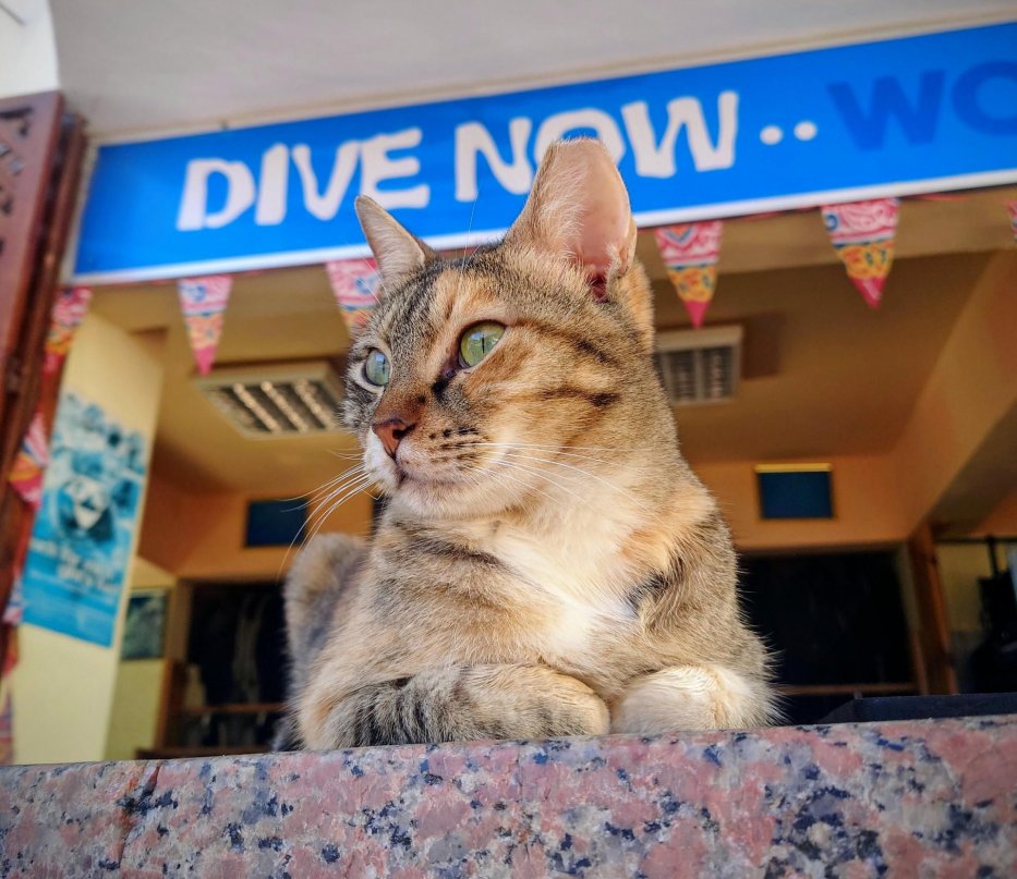 | Katzen sind sehr zuverlässige Mitarbeiter und haben alles im Überblick was in der Tauchschule so läuft. |
