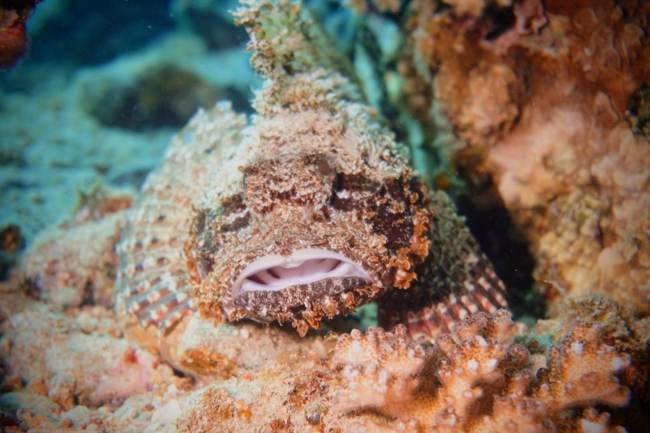 | Ein Scorpionfisch lauert auf Beute. |