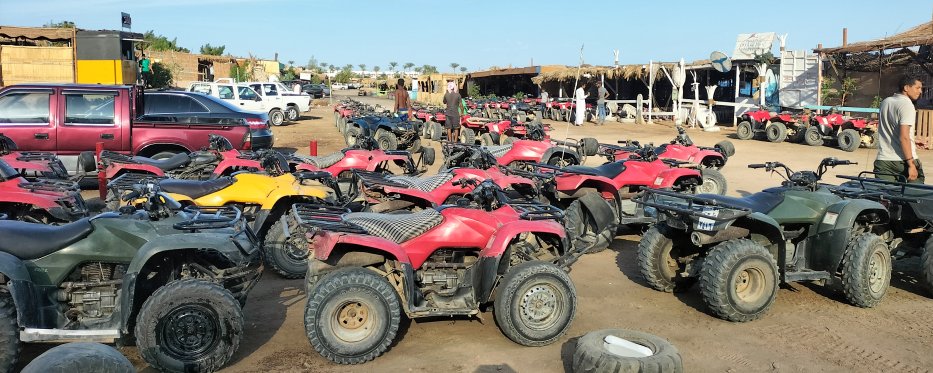 | Die ägyptischen Touristen kommen in Bussen aus Sharm zum Quad fahren. | |