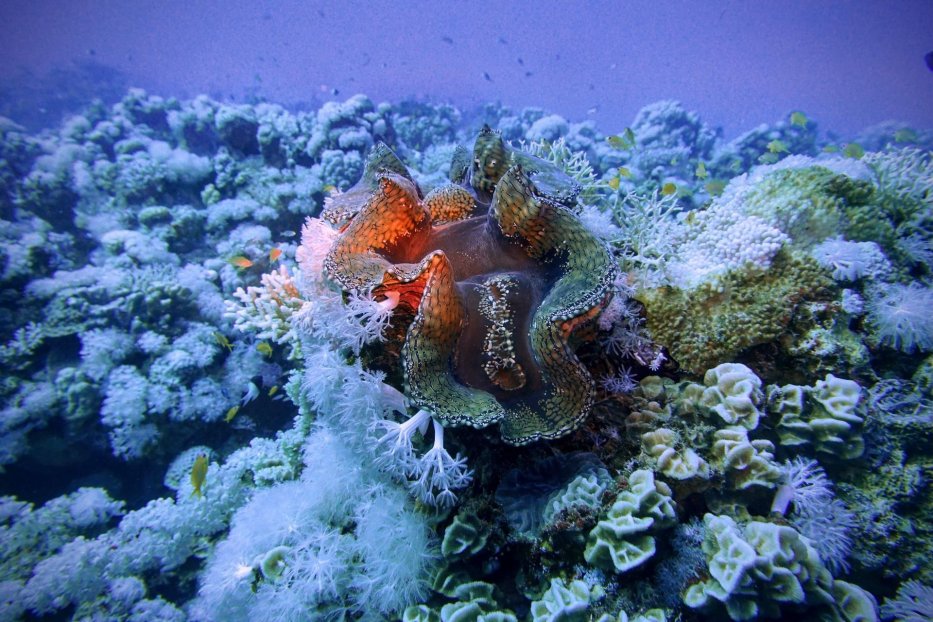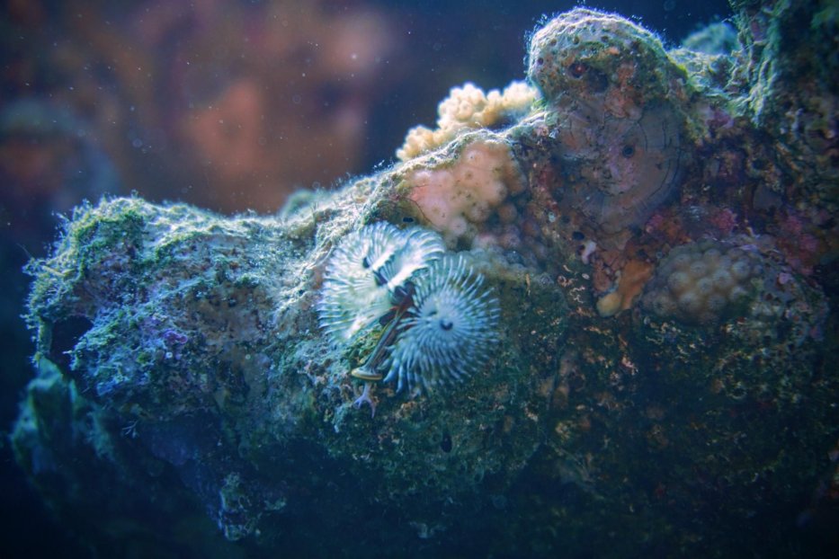 | Die abgebrochene Gorgonie in Um Sid hat Ali mit Kabelbindern vor einem halben Jahr fixiert. Jetzt filmt er für mich, ob die Aktion erfolgreich ist. Karin wartet in sicherem Abstand, Mani macht das schöne Foto von uns. |