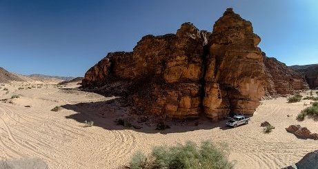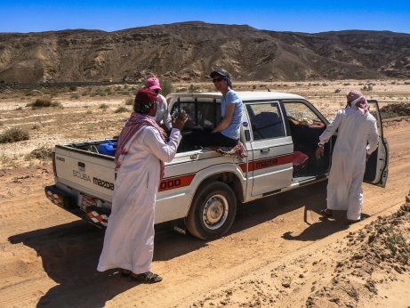 | Unser erster Ausflug in die Canyons nördlich von Dahab. Da wollen wir mit einem Mazda 2 x 2 Pickup hoch fahren? |
