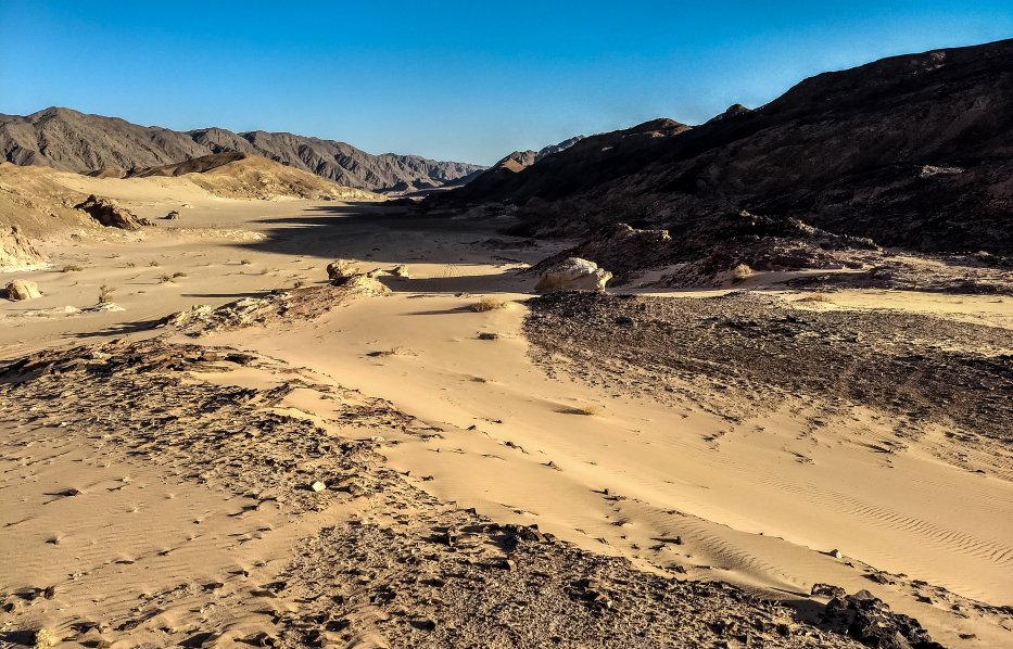 | Die Sinai-Wüstenlandschaft am Jürk-Pass. |