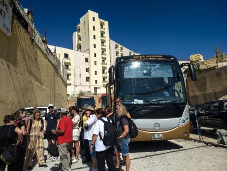 | Weiter geht es mit dem Bus 130 km nach Petra. | Unsere internationale Reisetruppe. |