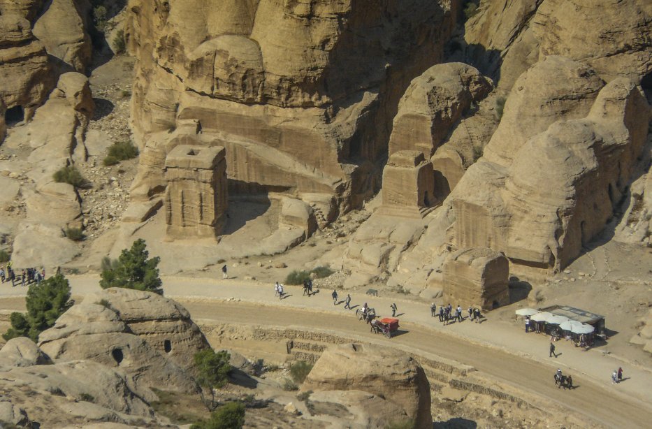 | Der erste Blick von oben auf den Eingang von Petra. |