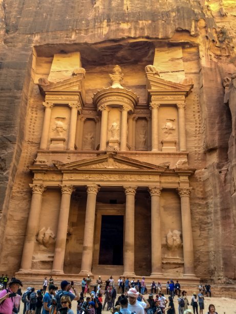 | An der Einmündung des Siq in den Talkessel steht das Schatzhaus Al-Khazneh, das berühmteste Bauwerk Petras. Wir kennen es aus dem Film "Indiana Jones und der letzte Kreuzzug". |