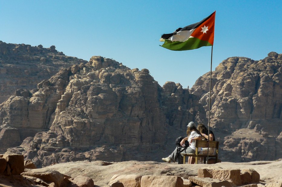 | Die jordanische Flagge weht über Petra. |