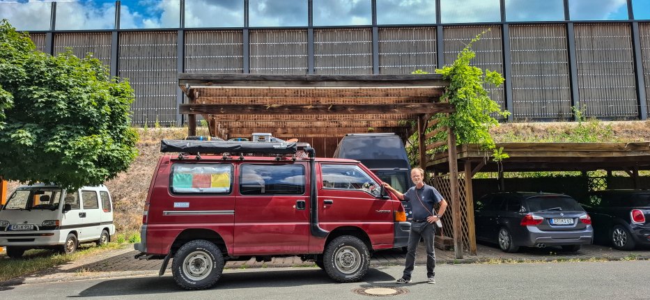 | Wir schweißen den Halter und in Reykjavik bekommen wir Ersatzgummis vom Pajero die passen. | Der Dämpfer ist eingebaut und nun klappert nichts mehr. |