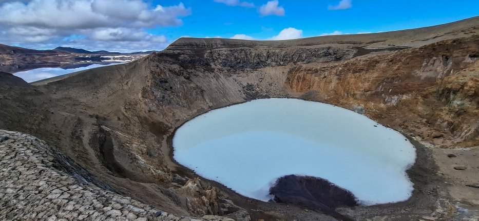 | Um 8:00 Uhr morgens mache ich eine Wanderung zur Askja. Um diese Zeit bin ich ganz alleine und kann mit der Drohne fliegen. | |
