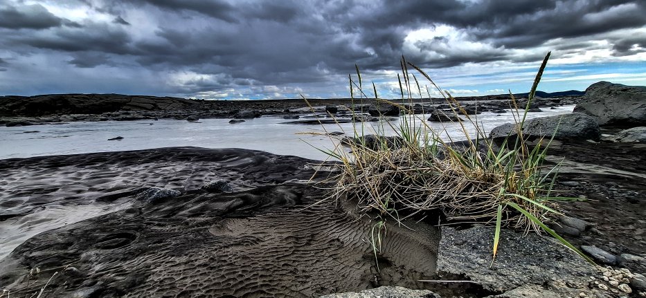 | Der Staudamm am Jökla Canyon ermöglicht die Stromerzeugung für ein riesiges Aluminium Werk. Im September kommen wir hierher zurück, der Stausee ist voll und der Überlauf des Sees braust in die Schlucht. |