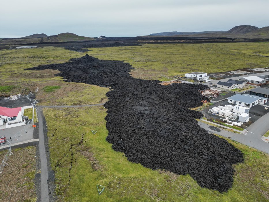 | Der Lava-Schutz-Damm hat die berühmte Blaue Lagune und das Kraftwerk im Hintergrund gerettet. |