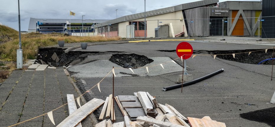 | Erdbeben haben Risse und Spalten erzeugt und ganze Häuser angehoben. Viele Straßen sind mit Lava-Brocken verschüttet. | |