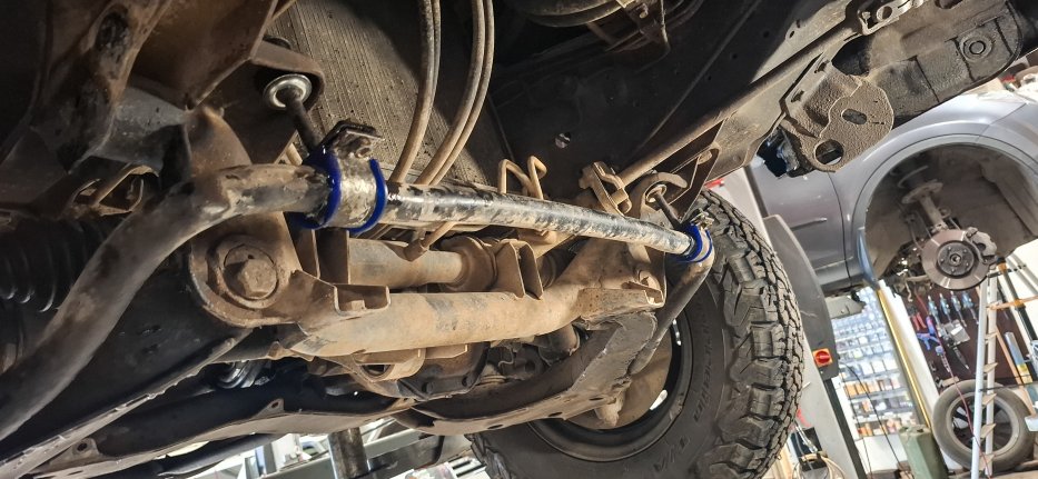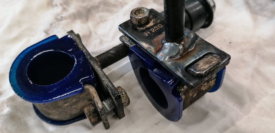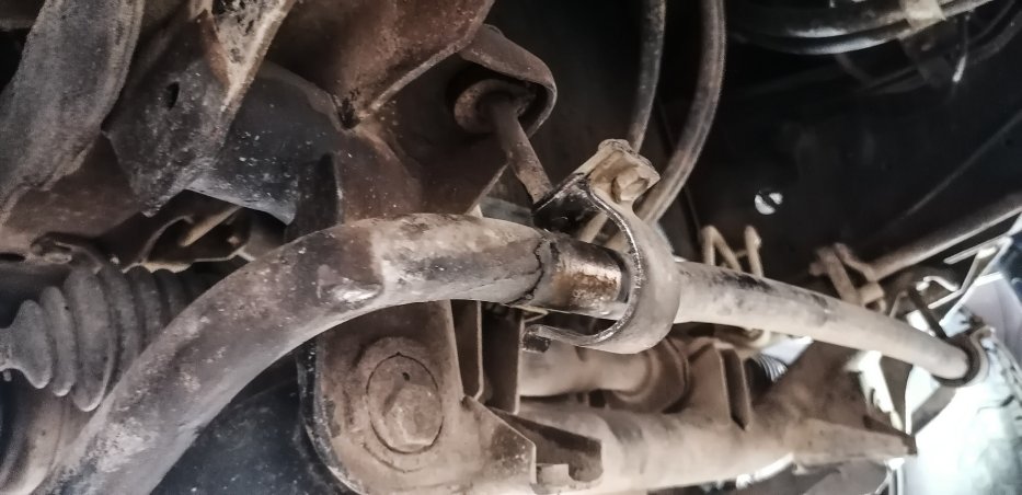 | Ein Dämpfer-Gummi vom Stabilisator hat sich auf den Schotterpisten aufgelöst und den Halter zerschlagen. |