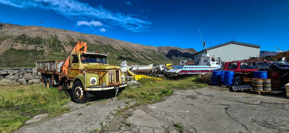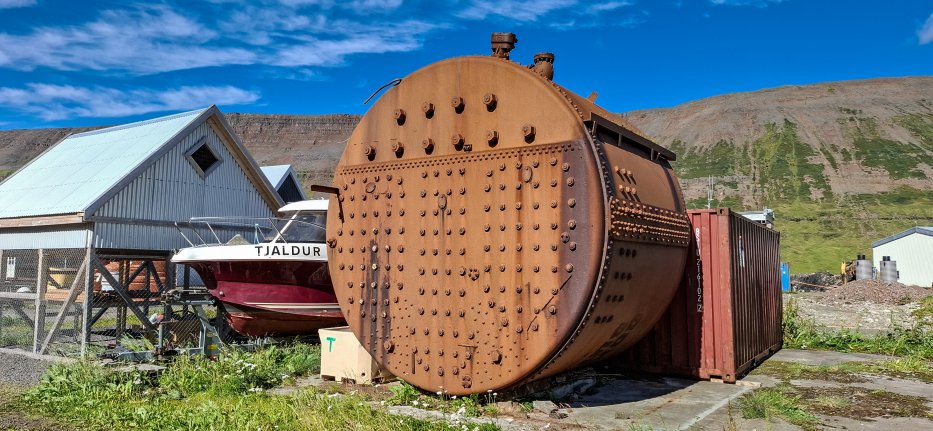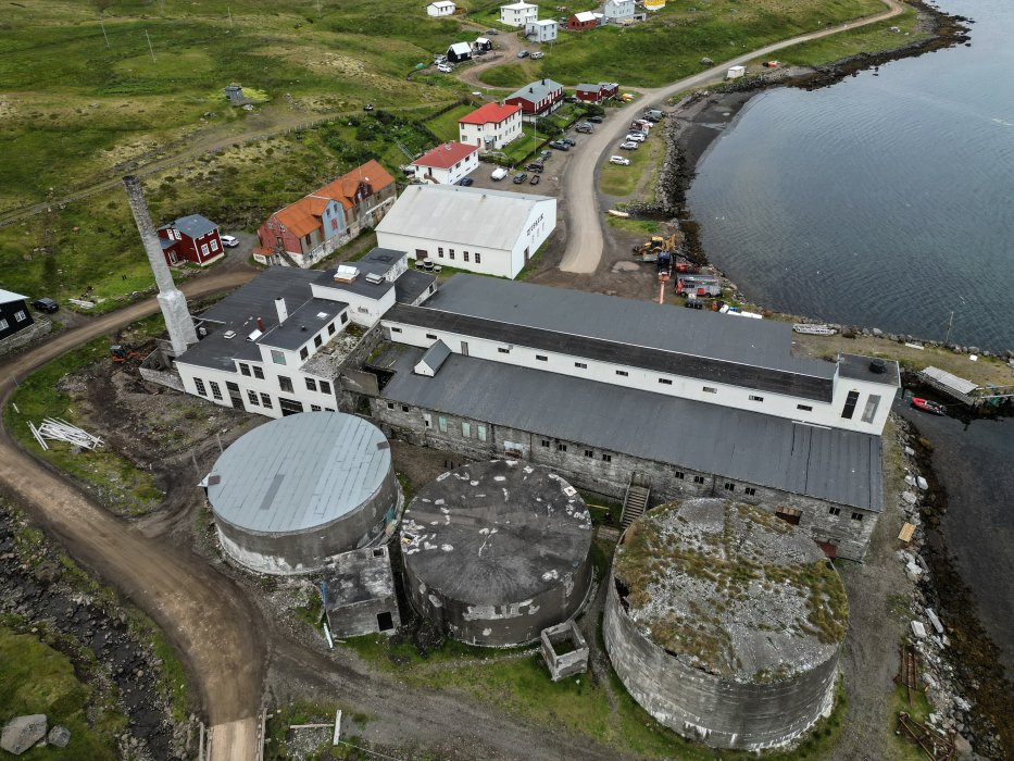 | Ab 1934 wurde in Djúpavik Heringsöl produziert. Es war damals die größte und modernste Anlage ihrer Art in Europa. Das Öl war begehrt für die Waffenproduktion im Zweiten Weltkrieg. |