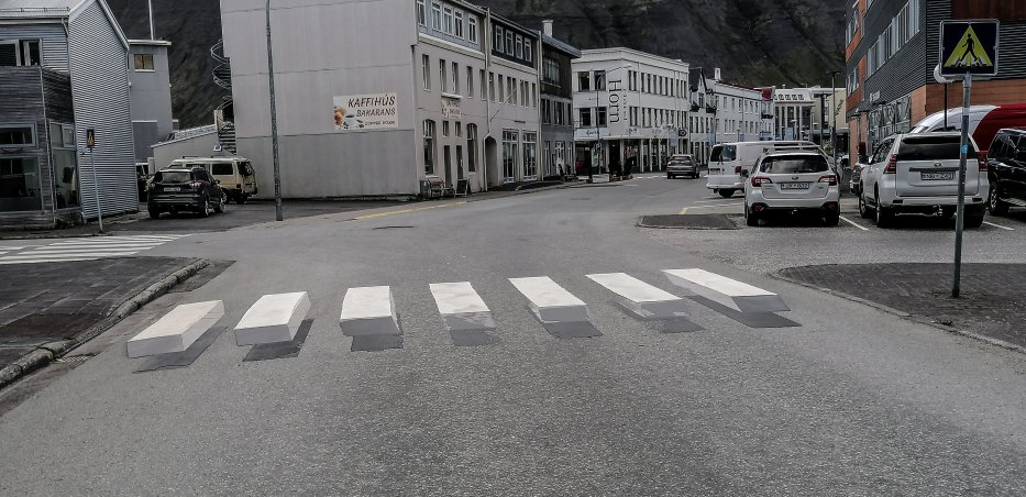 | Der 3D Zebrastreifen in Ísafjörður. |