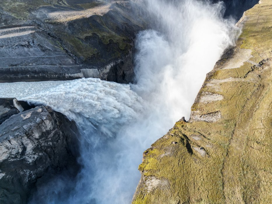 | Mit der Drohne fliege ich bis zum Überlauf der Jökla Schlucht. |