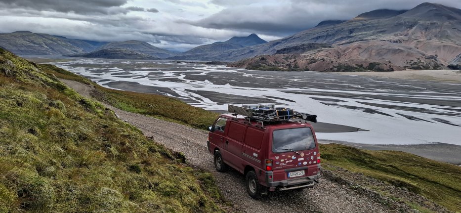 | F980; die Furt nach Lónsöræfi ist nur für 4x4 XXL passierbar, so campen wir vor der Furt. |