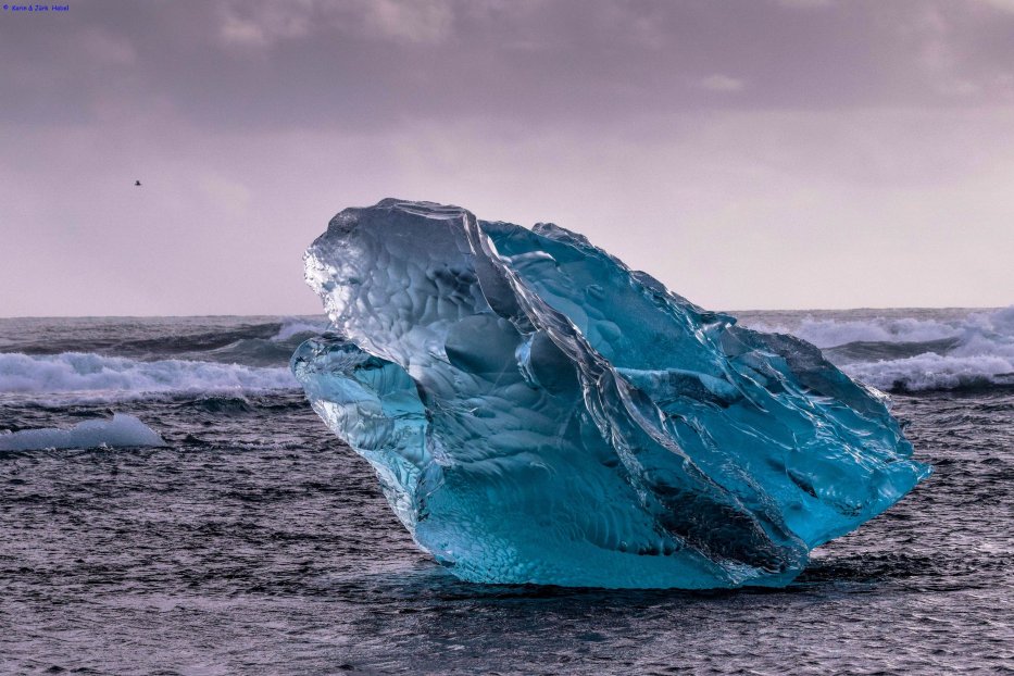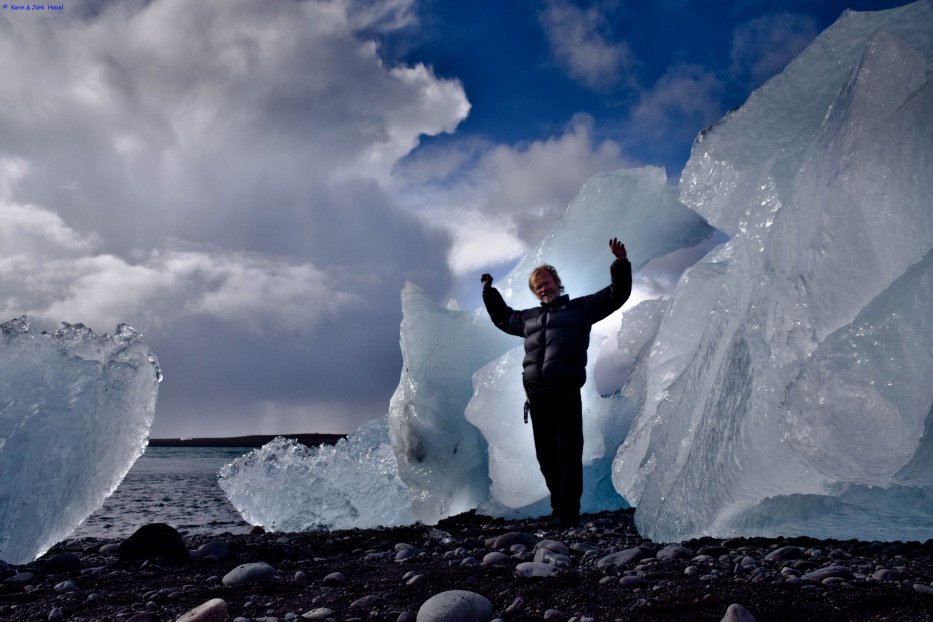 in Iceland zu sehen. 2025 sind am Diamond Beach vom Jökulsárlón nur noch kleine Eisbrocken zu finden.