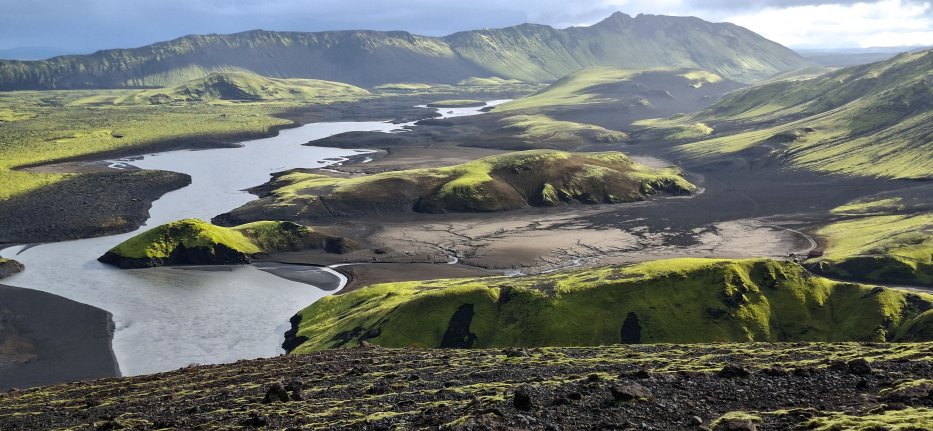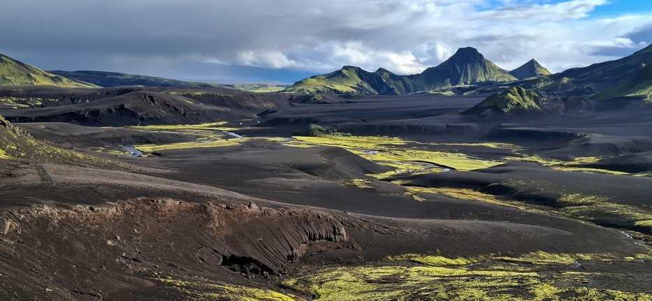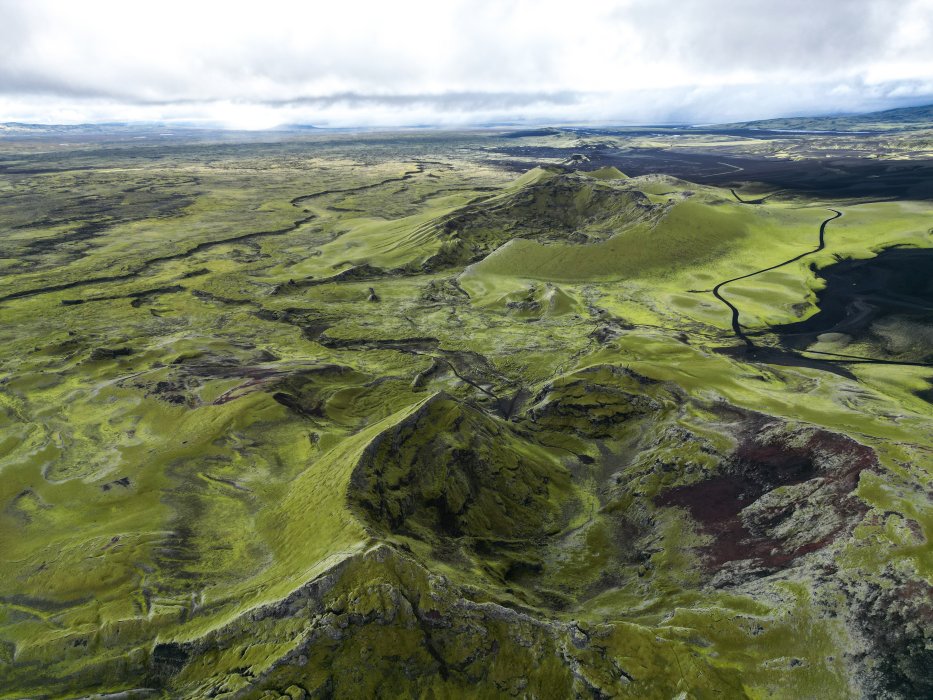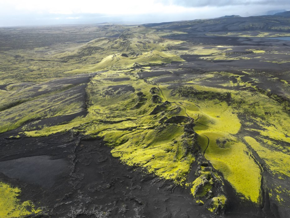 | Die Laki Spalte. Der Ausbruch 1783-1784 war gewaltig und hatte Auswirkungen auf das weltweite Klima. Die Lava floss 60 km weit bis vor Kirkjubæjarklaustur. In Mitteleuropa gab es eine massive Kältewelle und Ernteausfälle. Tausende Menschen verhungerten. Viele Brücken an Main und Donau wurden von den Eismassen zerstört. |