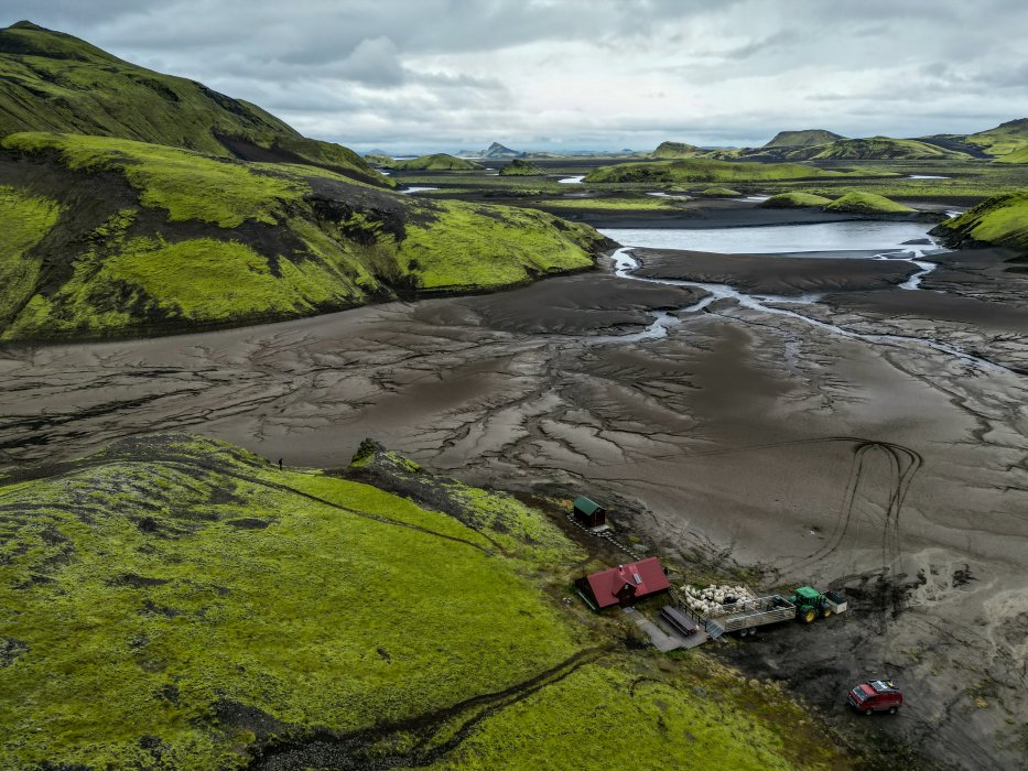 | Im Hochland sind wir Schäfern begegnet die ihre Schafe ins Tal trieben. Sie haben uns zum jährlichen "Schafsortieren" eingeladen. Das ist ein großes Fest in der Nähe von Kirkjubæjarklaustur. |