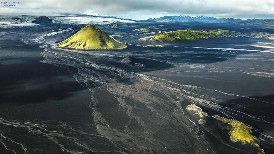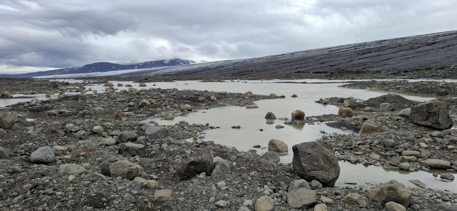 | Das Schmelzwasser vom Gletscher wäscht alle Fahrspuren weg. Im Sommer 2018 ist die Piste der F210 beim Malifell nur noch mit GPS zu finden. Manchmal markieren gelbe Stöcke den Weg. | |