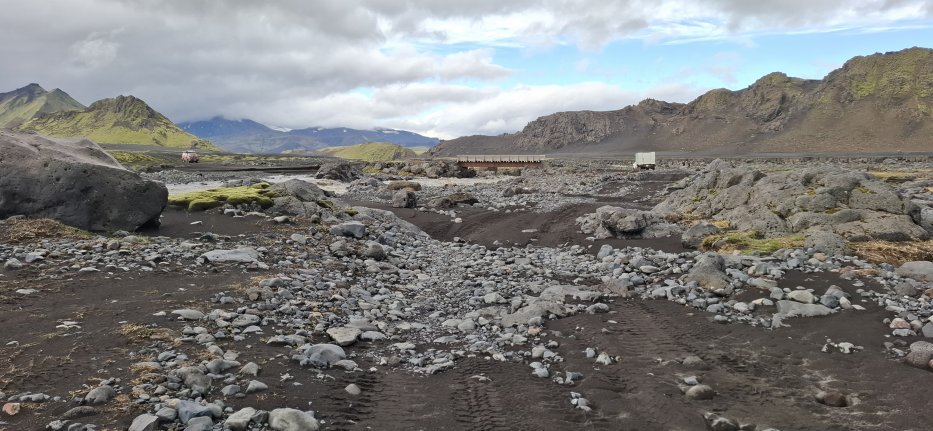 | Bei starkem Regen oder Schmelzwasser von den Gletschern können die Flüsse über die Ufer treten, wodurch große Steine auf der Piste liegen bleiben. | |