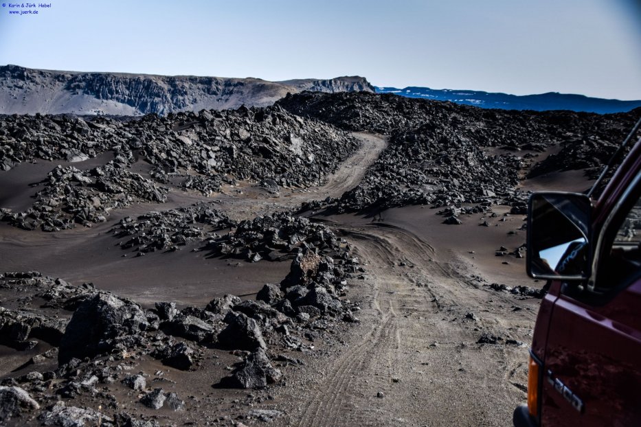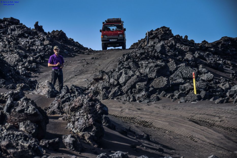 | Gute Reifen sind gefragt wenn wir die Lava Felder an der F910 West durchqueren. | |