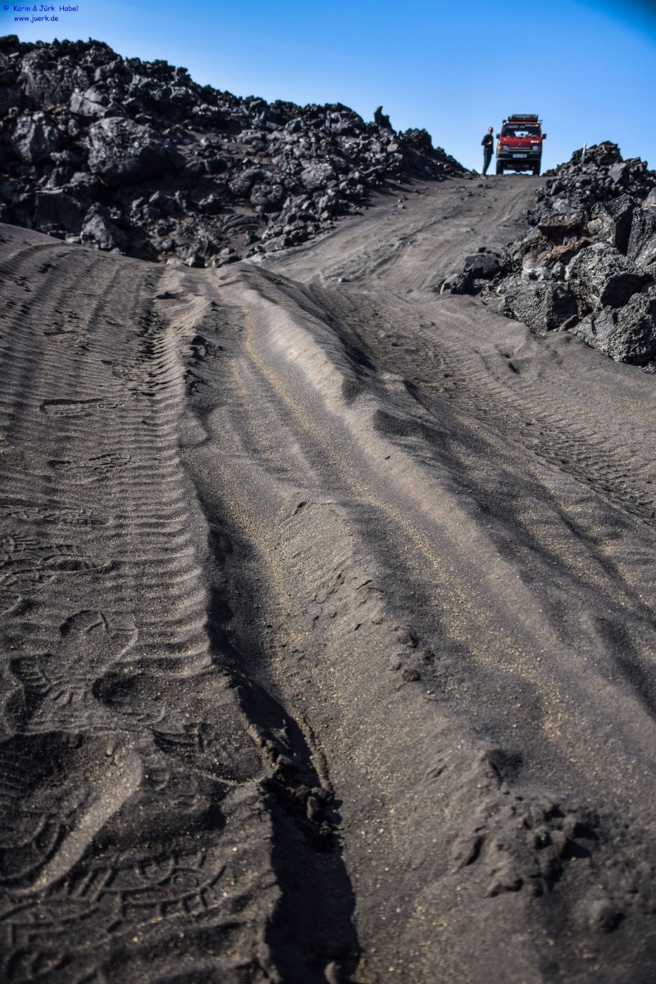 Lavasand kann man sich leicht fest fahren. Hier am Anstieg entlang des