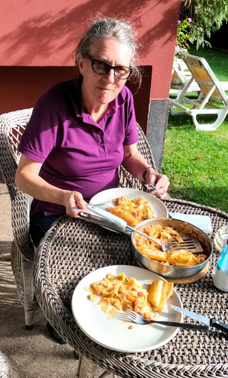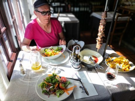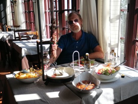 | Nach einer anstrengenden Wanderung essen wir in einem Restaurant. |