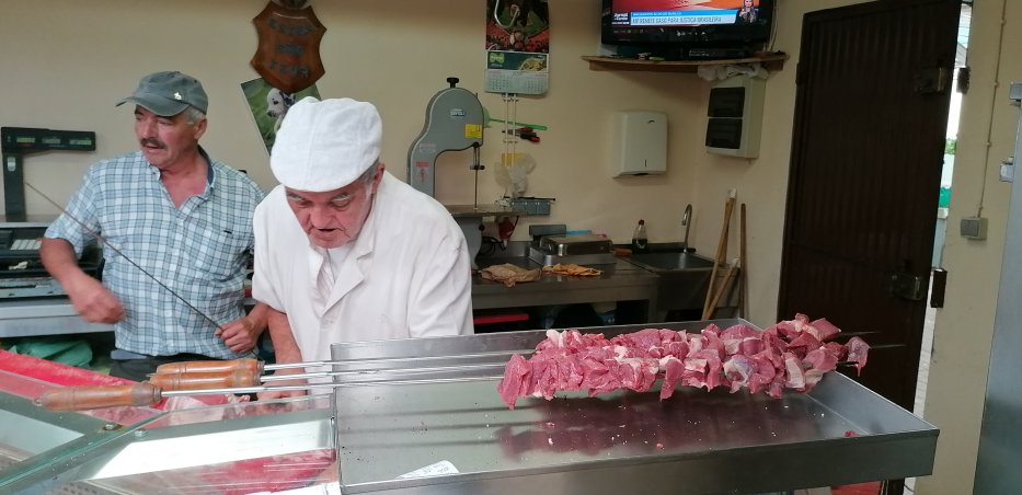 | Die riesigen Fleisch-Spieße sind eine Spezialität. Man kauft sie beim Metzger am Markt und lässt sie im Restaurant neben grillen. |