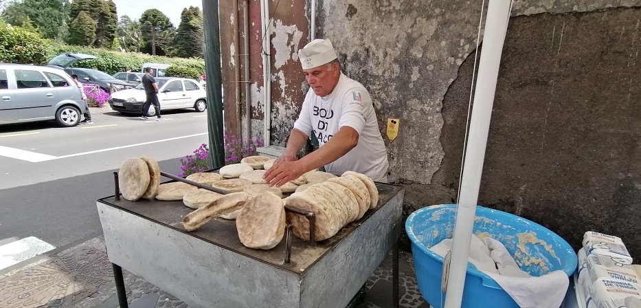 | Am Wochenende wird neben der Straße Brot gebacken. |