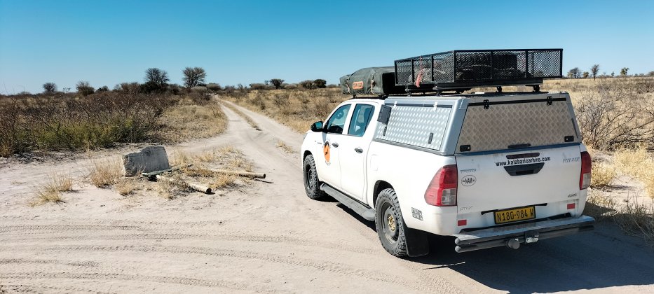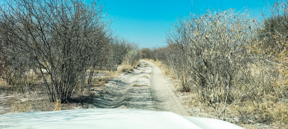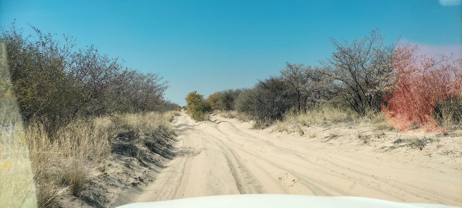 tanken und einkaufen können fahren wir nun tief in die Central Kalahari. Die Anfahrt zum Xade Gate erweist sich als schwieriger als gedacht. Für die 130 km brauchen wir sechs Stunden. |