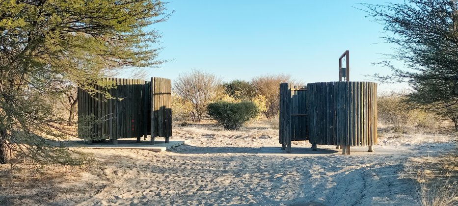 Typisch für die Nationalparks in Botswana sind die Toiletten und Duschen.