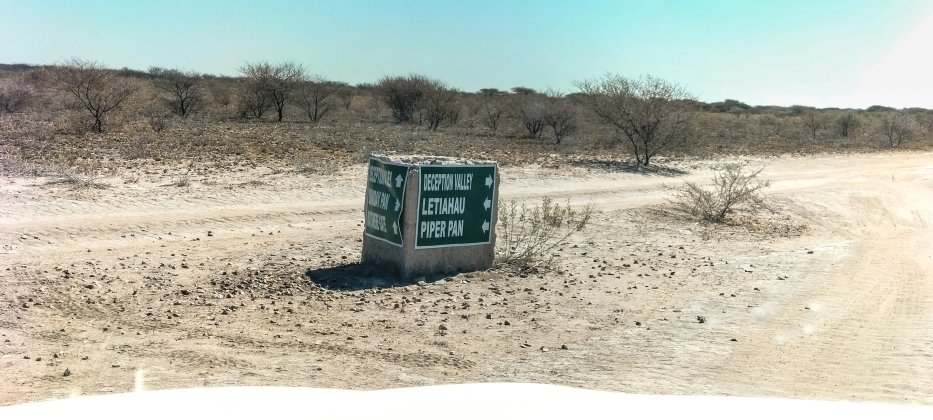 | Noch nie sind wir so südlich von Xade aus in den NP gefahren, daher können wir über die Piper Pan Richtung Deception Valley zum Passarge Valley fahren. | |