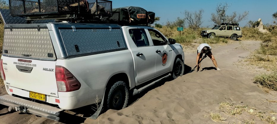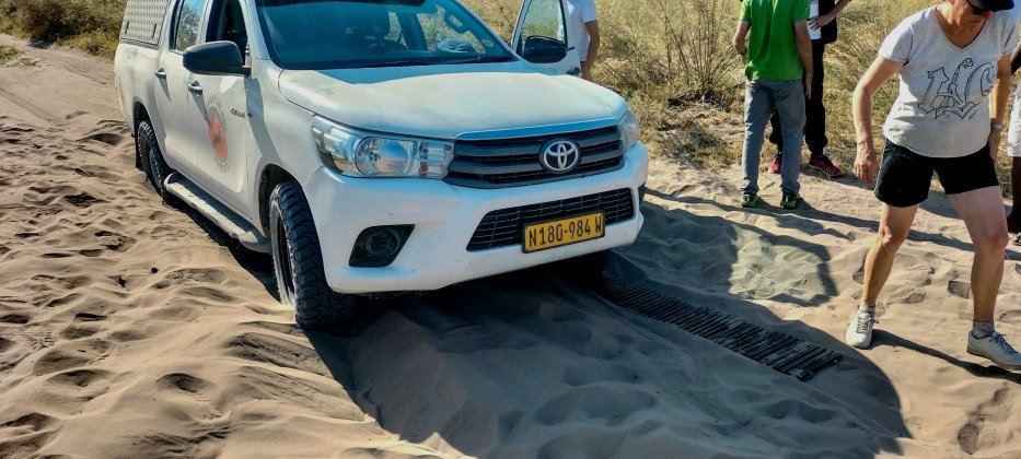 | Durch einen kleinen Fahrfehler bleibe ich nach der Third Bridge im Sand stecken. Mit unseren Sandmatten und Schaufeln kommen wir aber schnell wieder frei. | |