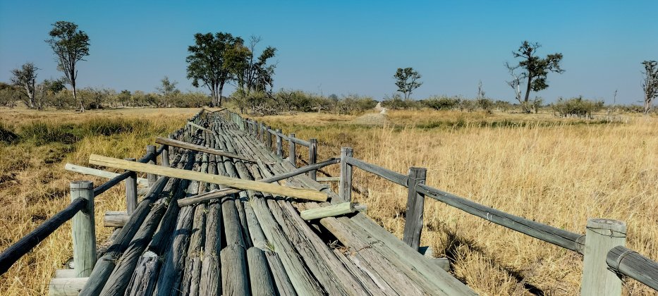 | Über die "First Bridge" zur "Second Bridge" kommen wir problemlos. 2009 waren wir das letzte Mal mit einer Gruppe von Südafrikanern hier. Der Wasserstand des Okawango war 2009 viel höher und die Piste teilweise überschwemmt. |