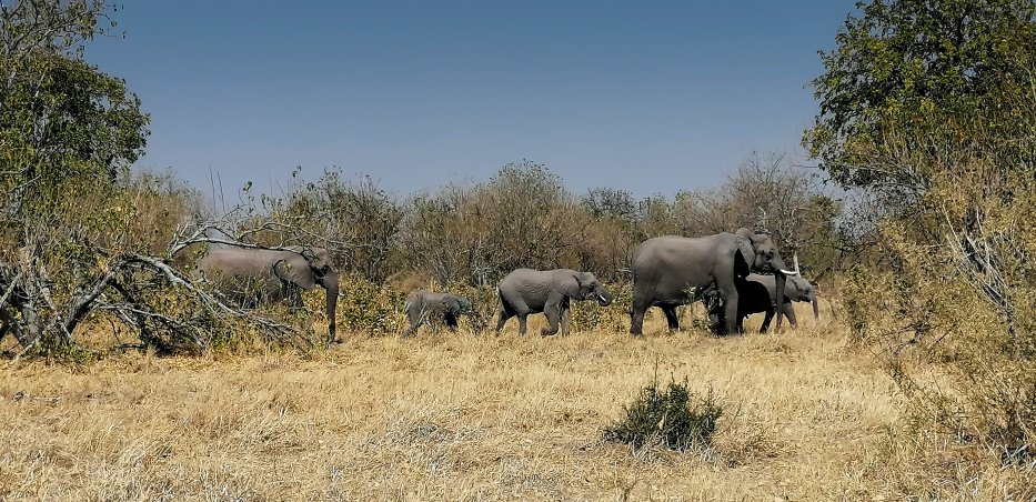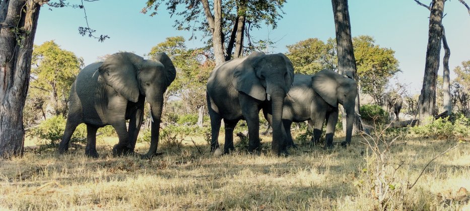 | Am Abend treffen wir noch einige Elefanten. |