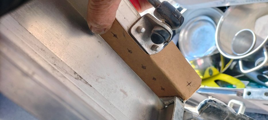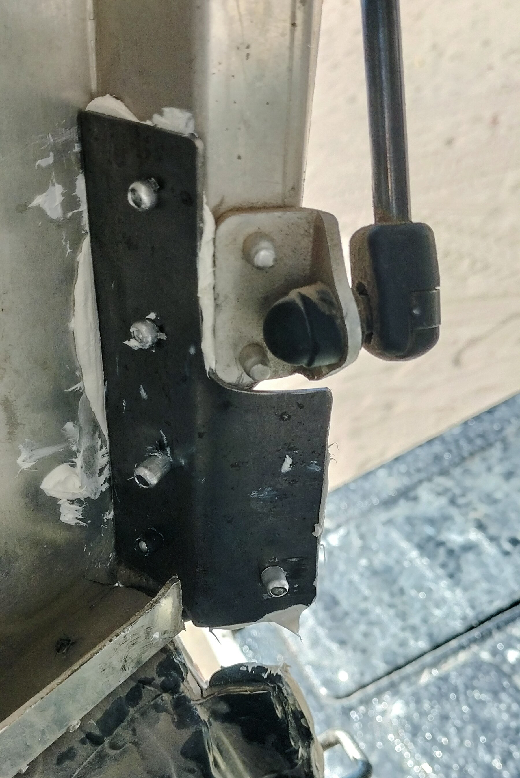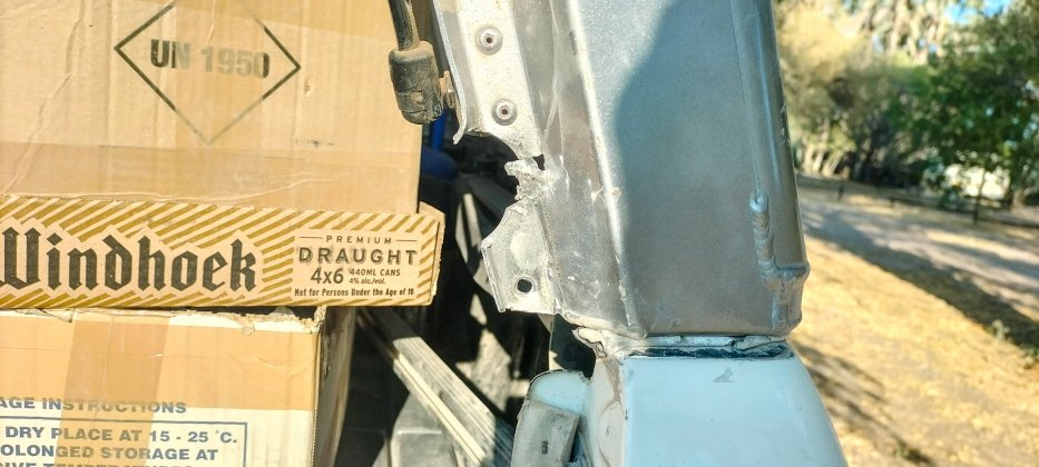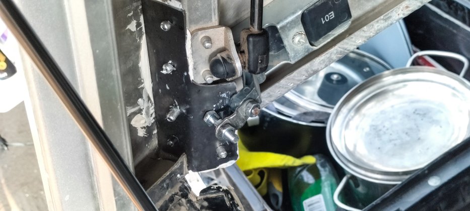 | Schon im Transfronier NP ist beim Hardtop der rechte Verschluss ausgebrochen und die Heckklappe sprang öfters auf. Der Staub im Inneren war danach gewaltig. Wir konnte den Anschlag nur provisorisch reparieren. |
