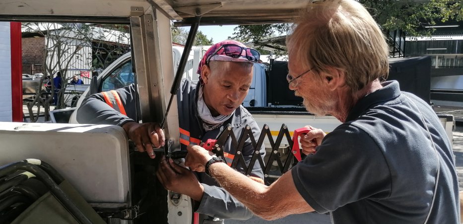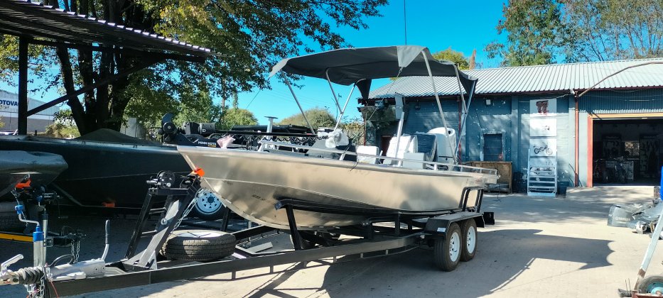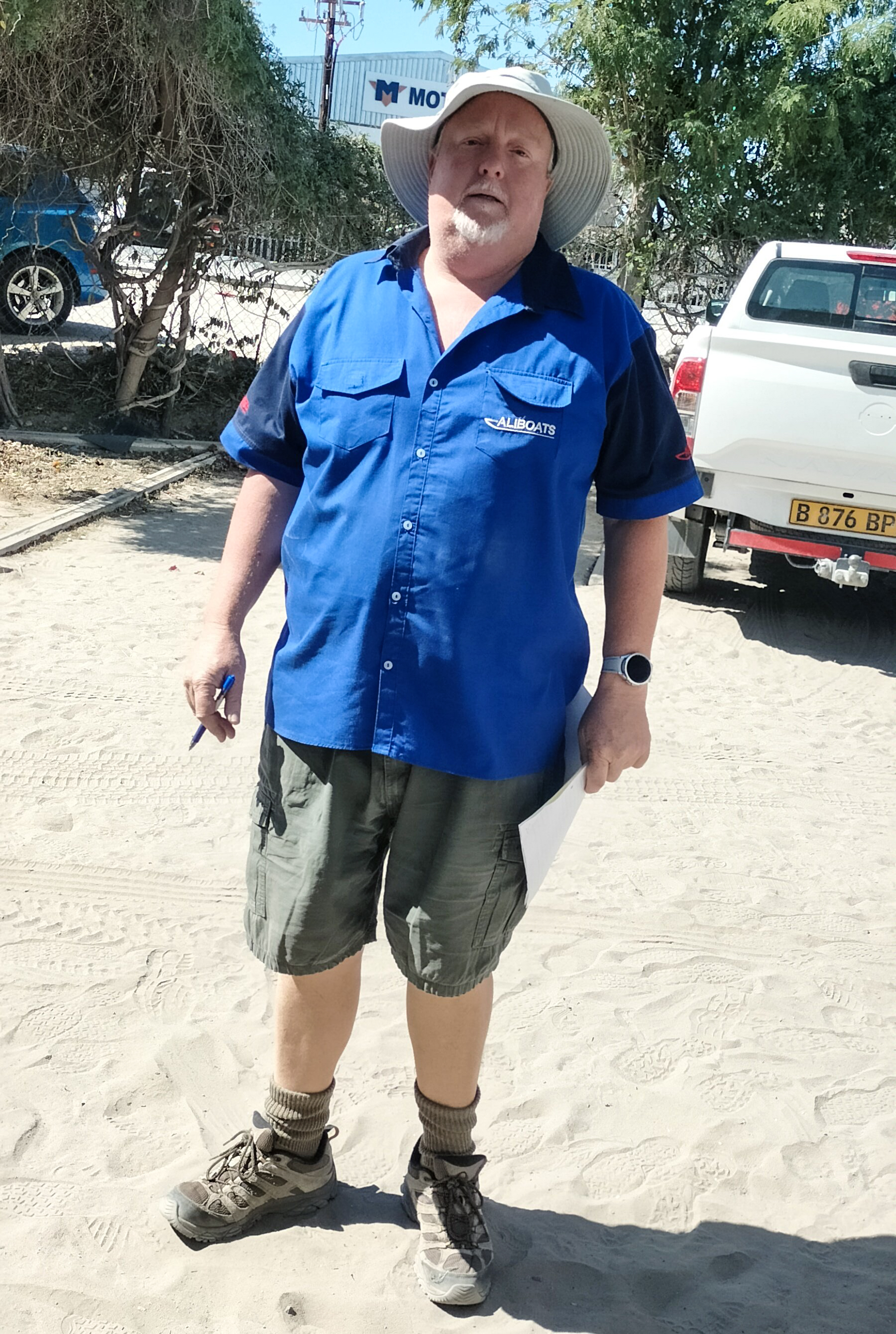 Gelegenheit das Hardtop zu reparieren. Wir fanden die Firma www.aliboats.com die Aluminium-Boote für das Okawango Gebiet baut. Der Chef zeigt uns gleich seine Firma und meint, dass meine Lösung mit dem Blech machbar wäre. |
