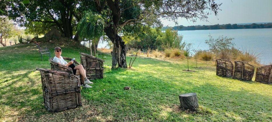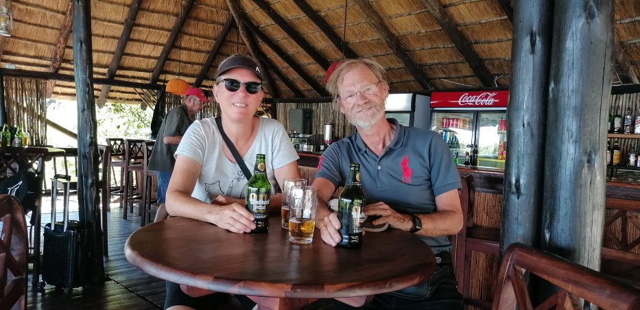 | Auf ein Bier besuchen wir doch noch die "Chobe Safari Lodge". Diese hat seit 2024 eine riesige Baustelle und die Campsites sind nicht mehr an der früheren Stelle am Fluss. |